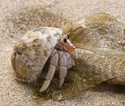 Einsiedlerkrebse befreien sich von ihren Muscheln und werfen sie ab, um sich schutzlos auf dem Liegetuch paaren. Ihr Blut spritzt in die Luft.